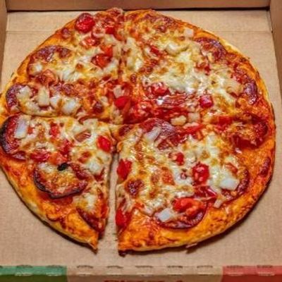 Pepperoni, capsicum, onion & chilli in a tomato sauce