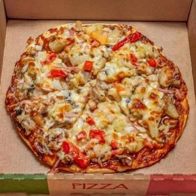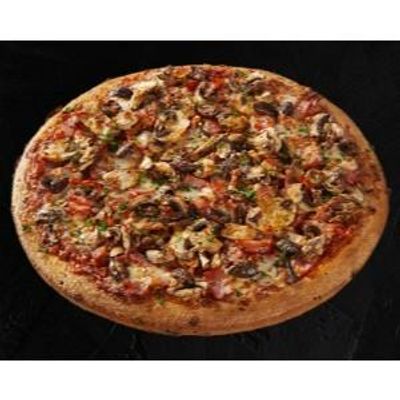 Mushrooms, capsicum, onion, bacon, pineapple, chicken & garlic in a tomato sauce