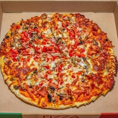 Tomato base, cheese, ham. cabanossi, mushroom, onion & capsicum