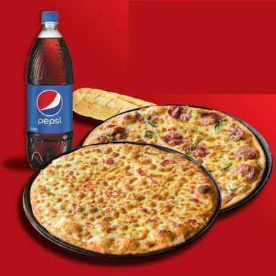 2xLrg Pizzas, Garlic Bread & 1.25L Drink